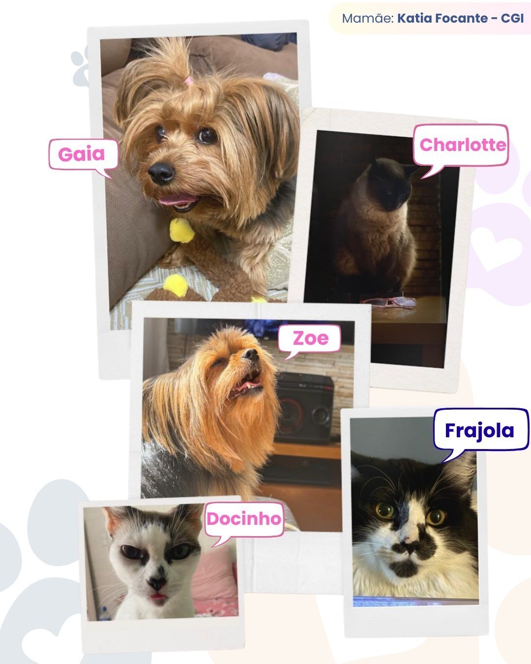 Gaia - 4 anos Charlotte - 8 anos Zoe - 4 anos Docinho - 17 anos Frajola - 3 anos