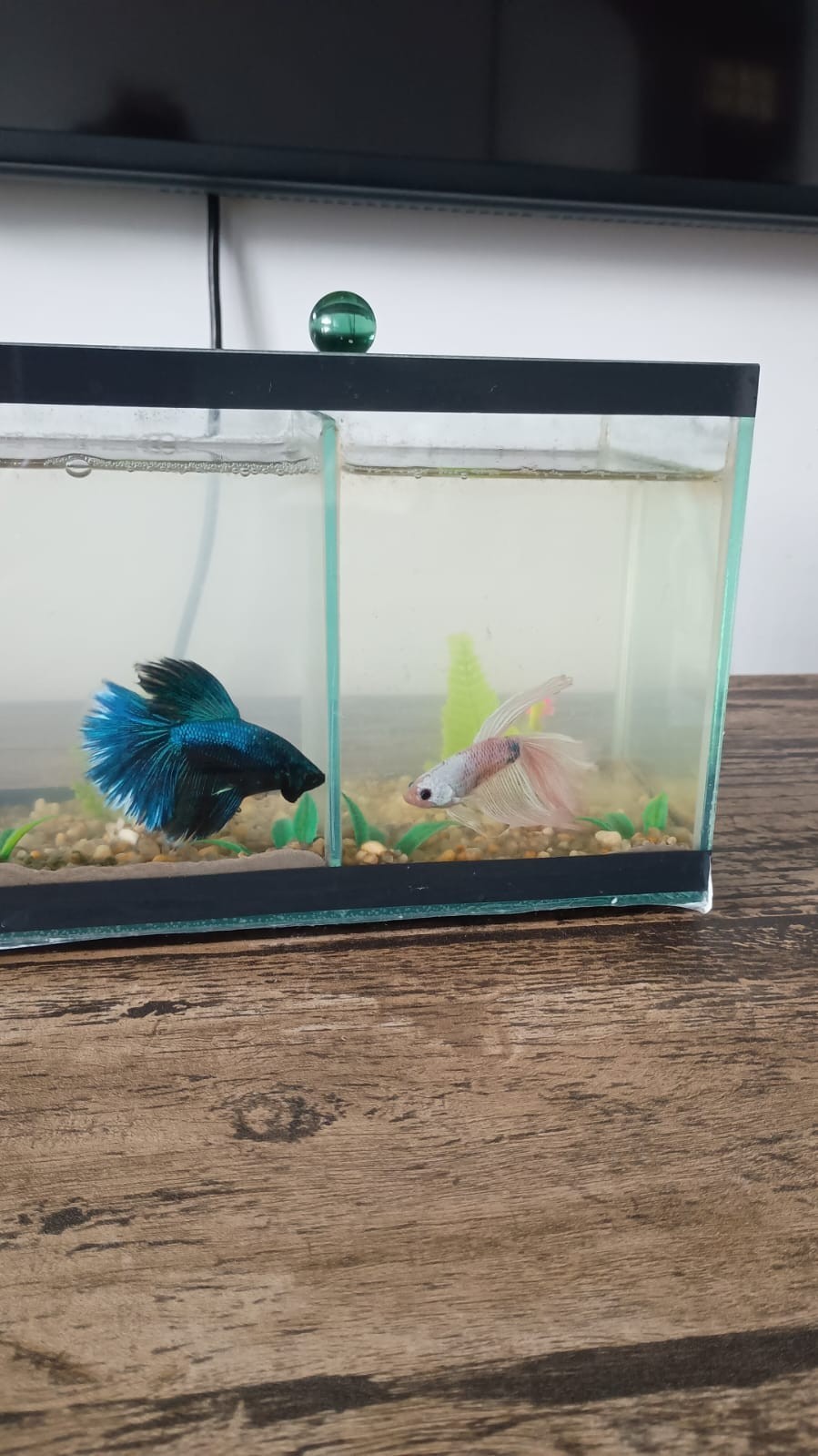 Cachorra - Fiona - 10 meses Gato Preto e Branco - Ravi Antônio - 3 anos Gata Marrom e Branco - Isabel Cristina - 5 anos Peixe Azul - Azul Peixe Branco - Cinzinha